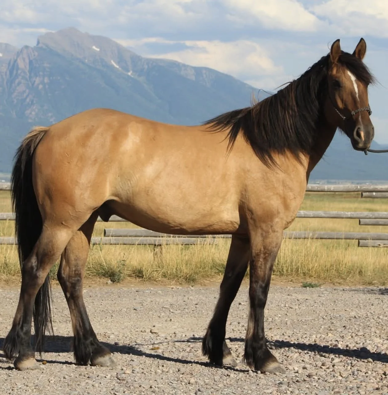 The horse that stays for the still, quiet moments. The one that always chooses your company, that makes you feel like the most important person on the planet – that’s Blackfoot. Not only is he rare in color and shape – not everyday you see a 15.2h line-backed silver buckskin Percheron/QH cross – but his calm, grounding energy is just as unique.